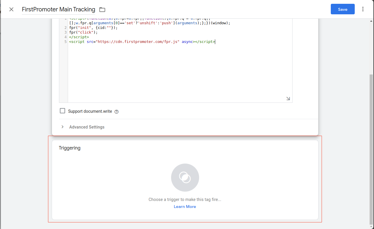 Now, you need to select when Google Tag Manager should trigger the script. To do this, scroll down to the